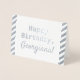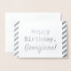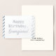 Este simples cartão de saudação de aniversário de folha prateada apresenta a mensagem "Parabéns" na frente, e um nome que pode ser personalizado. Há uma mensagem personalizada no dentro. Pode ser dado a alguém que comemora um aniversário.