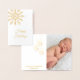 Este Cartão de Férias de Folha de Ouro elegante é acentuado com um grande floco de neve deslocado em um fundo branco. A dentro deste cartão está ainda decorada com bolas de Natal douradas, a sua própria mensagem pessoal e uma fotografia especial que o mantém simples e elegante para a época de férias.