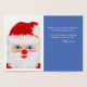 Cartão de Saudação de Natal Papai Noel, Pintado à Mão, com a frente de um cartão com uma imagem decorativa de folha de papel elegante em ouro. Dentro de cartão tem a imagem colorida de cheio de Papai Noel alegre com olhos azuis, nariz vermelho grande, bochechas rosadas, e chapéu vermelho peludo com pelo branco e pom-pom, seu casaco vermelho está chegando. Uma mensagem especial é gravada no lado direito dentro da placa com um fundo azul. Deixe o texto como está, ou exclua e insira sua própria mensagem especial. A parte de trás da carta tem a Peace escrito em folha de ouro. Artefato Original, Cartão Verso Copyright © TamiraZDesign.