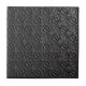 This ceramic tile features a highly detailed, repeating geometric pattern defined by a continuous tessellation of starburst or rosette motifs. The pattern is visually intense and dynamic with a finish rendered in a heavy, textured cast iron or oxidized black steel effect. This dramatic tile is perfect for creating a bold, masculine statement and is ideally suited for Steampunk, industrial-loft, urban, or modern-Gothic décor applications like backsplashes, accent walls, and fireplaces. Search ID1227 to see other metallic geometric designs in this series. Note: design adapted from generative content.