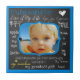 Meu azulejo de fotos personalizável do meu filho, um belo presente para seu filho em qualquer palco de sua vida, seja ele dois ou 42! Apresenta um fundo de aparência de quadro comum, uma borda azul brilhante, texto branco, azul e amarelo de vários estilos e tamanhos de fonte, alguns corações e flores, e uma área de fotos colorida azul, à qual é fácil adicionar sua foto antes de fazer o pedido. O texto diz "Meu Filho Bonito, Amor da Minha Vida, esperança, alegria, felicidade, a minha parte, orgulho e alegria, Eu me apaixonei por você mesmo antes de você ser nascer, meu sol, meu maior presente, meu amor de 4 anos.
