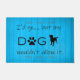 O Meu Cachorro Não Permitiria que o tapete de porta fosse perfeito para aqueles que preferem o conforto de casa e a companhia do seu cão. A design de porta apresenta texto que diz "Eu ia...mas o meu cão não o permitiria." com uma pata impressa e uma silhueta de cão embelezada contra um fundo de madeira azul. Itens de presentes adicionais disponíveis com este design também.