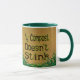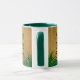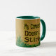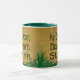 Uma caneca de jardineiro engraçada lendo Meu composto não fede em marrom-sujo e folha de letras verdes com grama verde em fundo azul-claro, para jardineiros que reciclar seus recortes e verdes em compostagem rica.