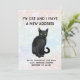 Meu gato e eu temos um novo endereço, nós mudamos. Meu gato preto já está a desfrutar da nossa nova casa.