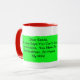 Está aqui uma caneca cómico para que uma criança ordenhe para fora para o papai noel. Mas, você está livre mudar a mensagem neste para dizer mais algo se você deseja. E, então você pode personalizar este com nome de uma criança (ou crianças). Nós estamos mostrando este na caneca vermelha do estilo da campainha. Mas igualmente olha bom com a guarnição verde ou preta demasiado.