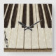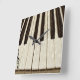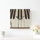 Chaves de piano com notas de música desbotadas em teclas e uma nota de clave preta no relógio de parede personalizado superior.