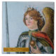 Neste quadro, Três Arcanjos e Tobias, de Francesco Botticini (1446-1498), mestre menor da Renascença Italiana Antiga, Ruas. Michael lidera a coluna de viajantes folheados na armadura contemporânea do 15. O braço da espada estendeu-se, ele segura a arma no pronto, pronto para lidar com qualquer perigo na estrada. Rua. Michael tem cabelo auburn, um halo branco de trabalho aberto, calçados vermelhos, uma capa vermelha curta com um revestimento verde e asas escuras. Na sua mão livre, tem uma órbita, um símbolo de autoridade, ou um peso, uma referência ao seu papel na pesagem das almas no Último Acórdão. + Banquete: 29 de setembro + Crédito de imagem (M 017): Detalhe de Três Arcanjos e Tobias, por Francesco Botticini (1446-1498), tempera no painel, 60 5/8" x 53 1/8" (154 cm x 135 cm), Florentine Italiano, cerca de 144 70, Uffizi Gallery, Florence, Itália. {{PD-Art|PD-old-100}}. De um cartão postal antigo Stengel na coleção particular do designer.
