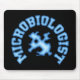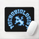 Microbiologista - mousepad preto com luz - rotulação azul e ameba estilizado.