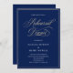 Este cartão de convite para janto de ensaio azul e marinho de ouro é ideal para casamentos românticos e elegantes. A coleção é projetada para sair do preto e branco com cabeçalhos em letra de script e ouro em fundo de marinho dando uma impressão de luxo. Igualmente adequado para casamentos de vidro, celestes ou náuticos. NOTA IMPORTANTE: A textura "falsa" da folha de ouro nesta coleção é gerada graficamente e não é uma folha de alumínio real. As palavras "ensaiar" e "Jantar" na letra do script não são editáveis, mas sinta-se à vontade para ajustar o cartão ao seu tema.