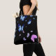 Midnight Butterfly Blue Floral Shoulder Tote Bag