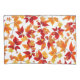 Autumn Midnight, mostra um padrão vibrante de folhas do outono em um fundo preto. As folhas são uma mistura de tons vermelhos, laranja, amarelo e dourados, representando uma variedade de espécies como carvalho, carvalho e castanheiro. "o contraste entre as cores vívidas das folhas e o fundo escuro cria um efeito marcante e dramático, enfatizando os tons quentes e o detalhe intrincado da folhagem. folhas menores, bolotas e galhos são espalhados ao longo, acrescentando profundidade e textura ao padrão. A design tem um sentimento enérgico e festivo de uma noite viva de outono.