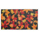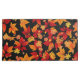 Autumn Midnight, mostra um padrão vibrante de folhas do outono em um fundo preto. As folhas são uma mistura de tons vermelhos, laranja, amarelo e dourados, representando uma variedade de espécies como carvalho, carvalho e castanheiro. "o contraste entre as cores vívidas das folhas e o fundo escuro cria um efeito marcante e dramático, enfatizando os tons quentes e o detalhe intrincado da folhagem. folhas menores, bolotas e galhos são espalhados ao longo, acrescentando profundidade e textura ao padrão. A design tem um sentimento enérgico e festivo de uma noite viva de outono.