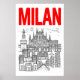 Milan Skyline Wall Art - Graphic Poster Style with