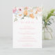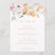 Este menu apresenta um design floral primavera de aquarela. Adicione um obrigado aos seus convidados no verso do menu ou deixe-o vazio. O cabeçalho do script é uma imagem que não pode ser editada. Todo o outro texto é totalmente editável. Para personalização mais avançada deste design, basta selecionar o botão "Personalizar" acima.