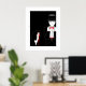 Um mímico em um smoking preto e branco e vestindo uma gravata vermelha de arco olha para um pinguim que está tendo dificuldade em amarrar sua gravata vermelha de arco. O estilo gráfico faz desta arte uma peça divertida para ficar em um escritório, sala de crianças ou toca. Mime Pengun vai com o companheiro Mime Zebra.