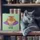Um persa laranja em almofadas roxas mostrando sua atitude.