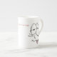 As caras dos desenhos animados de uma pessoa esgotada em ambos os lados da porcelana de osso agridem com "minha caneca sonolento do chá do tempo" escrita no centro. As palavras podem ser mudadas a qualquer coisa que você prefere.