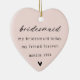 Celebre a sua dama de honra e melhor amiga com este belo Enfeites de natal, um perfeito apetite para honrar o seu papel especial no seu casamento. Apresentando uma mensagem sincera e um design elegante, é uma maneira séria de mostrar sua apreciação durante o feriado. Personalize com o nome e a data do casamento para criar uma memória duradoura que ela apreciará ano após ano.