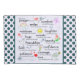 "Esta é minha oração para você: Conforto em dias difíceis, sorrisos quando a tristeza penetrar, arcos-íris para seguir as nuvens, riso para beijar seus lábios, pôr do sol para aquecer seu coração, abraços quando os espírito cederem, beleza para que seus olhos ver, amizade para iluminar seu ser, fé de modo que você possa acreditar, confiança para quando você duvidar, coragem conhecer-se, paciência para aceitar a verdade, amor para terminar sua vida." Com um fundo e bolinhas azuis/verdes.