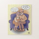 Um quebra-cabeça com um desenho engraçado sobre um marido chamando sua esposa de rainha. Imagem e fundo podem ser personalizados. Arte original de BD Cartoons.