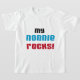 Minhas T-shirts nonnie Rocks, cartões, adesivos, sacos de tote, ímãs, botões e outros itens com um design de texto preto, azul e vermelho. Estes itens de Nonnie Rocks são uma forma excelente de mostrar seu amor por seu nonnie especial!