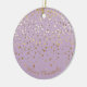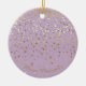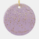 Enfeites de natal apresentado em Lavanda com forma redonda, com um belo feriado Ouro estrelas impressão e texto de Feliz Natal. Personalize este item ou comprar como está.