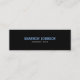 Cartão de visita delgado. Design estreito, mínimo do texto azul customizável no fundo preto. Cartão de visita magro do costume, o simples e o limpo mini.