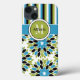 Este gabinete personalizado preto, branco, azul-turquesa e verde-oliva Mate-Mate Mal Ali Mini Retina tem um padrão de fundo floral e listrado de starburst divertido com uma banda azul-aqua, verde e branca e círculo para adicionar seu nome, iniciais, monograma ou outro texto. Este novo caso moderno e moderno faz uma declaração chic para o jovem motista da quadra! Se precisar de assistência, envie um email para niteowlstudio@gmail.com.