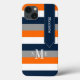 Esta náutica inspirou um marinho personalizado azul, laranja, branco e cinza Mala-Mate Mal Ali Mini Retina tem um padrão de fundo listrado em negrito grande e uma faixa de faixa com costura branca que você pode adicionar seu nome, iniciais, monograma ou outro texto. Este novo caso moderno e moderno faz uma declaração chic para o jovem motista da quadra! Se precisar de assistência, envie um email para niteowlstudio@gmail.com.