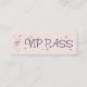 Mini Flamingo Pink 'VIP PASS' - magra cartão de visita