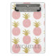 Miniprancheta de abacaxi com padrão brilhante rosa e dourado com nome. Personalize esta área de transferência tropical com seu nome, citação inicial, inspiradora ou palavra. O texto e a cor da fonte podem ser personalizados para se adequarem ao seu estilo pessoal.
