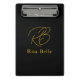 Stay organized in style with this black and gold custom name elegant mini clipboard. Featuring a sleek black base with luxurious gold accents and personalized name detail, it combines practicality with sophistication. Perfect for quick notes, checklists, or small tasks, its compact size makes it ideal for on-the-go use. Designed for students, professionals, and creatives, this mini clipboard offers a stylish, functional accessory that elevates everyday organization with a touch of elegance.