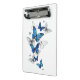 Borboletas azuis voadoras morfo e borboletas brancas em um fundo de abstrato leve. Morpho. Design com borboletas azuis morfo.