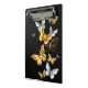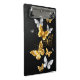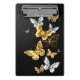 Borboletas Douradas, joias e brancas sobre fundo preto. Borboleta ouro.