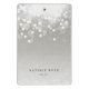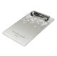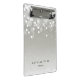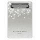 A área de transferência de chic apresenta duas linhas de texto personalizado em letras negras clássicas em um fundo de cinza de prata adornada com uma explosão de luzes brancas de chavão no topo. Design repete-se no lado oposto. Observe que esta área de transferência é um tamanho mini; a versão do tamanho do cheio também está disponível em nossa coleção Platinum Glow.