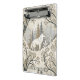 Esta serena área de cobertura de floresta de inverno apresenta um lobo branco majestoso em seu centro, cercado por árvores com poeiras de neve em tons suaves de creme, marrom, cinza e azul pálido. Um segundo lobo está sutilmente aninhado no canto inferior, apontando para a vida invisível dentro do silêncio da floresta. Com uma mistura de árvores nuas e verdes, enquadradas por delicados elementos decorativos, esta design evoca a beleza natural, a quietude e um toque de magia de inverno. Perfeito para amantes da natureza, entusiastas dos animais e contextos sazonais ou de fantasia.