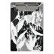 Um desenho abstrato com formas aleatórias e texto de saudação em preto, branco e cinza.