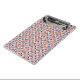 Clipboard with vibrant geometric pattern of orange, blue, and pink diamond shapes. The front has a metal clip; back features the same colorful design.