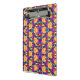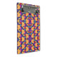 Colorful clipboard featuring a vibrant kaleidoscope pattern of orange and purple geometric shapes and swirling leaves. Bold, dynamic design.