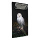 Foto de retrato animal de uma majestosa coruja de neve em um galho.