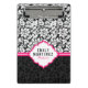 Mini Prancheta Damasco Preto E Branco Elegante Com Faixa Rosa