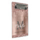 A brilho dourada rosa, moderna e girada, goteja o nome personalizado e monograma da miniárea de transferência. Este design apresenta brilho brilhante cor-de-rosa-rosa pincelado dourado sobre fundo de metal piscado cor-de-rosa falso com modelo de texto inicial de monograma e nome. Presente personalizado perfeito para voltar à escola, trabalho profissional, escritório doméstico. Por favor, note que esta design é um efeito fotográfico impresso sem brilho real.