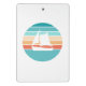 Design do pôr do sol no estilo da década de 1980 em efeito angustiado com o centro de ilustração da embarcação (frente e verso). Linhas transparentes e silhueta de veleiro para se alterar para uma cor de fundo de sua escolha ou manter como branco.