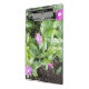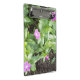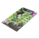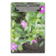 Uma miniárea de transferência, com uma imagem, de flores pequenas roxas, na frente e atrás dela.