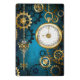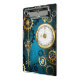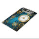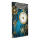 Turquesa, texturizada, fundo steampunk com latão e engrenagens douradas, chave prateada e relógio. Estilo Steampunk.