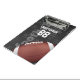 Um moderno design de ferro da rede de futebol americana, que apresenta uma bola de futebol num fundo tipográfico de quadro-negro com terminologia de futebol no fundo. O design apresenta texto personalizável para o nome e o número do jogador de futebol ou do ventilador de gusa-rede. Este design foi feito em parte com gráficos licenciados pela Fábrica de Gráficos.