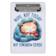 Capture a essência da introversão com esta adorável prancheta com um gato adormecido e a frase humorística, 'Não hoje. Também não amanhã." Perfeito para amantes de gatos e introvertidos, este charmoso trabalho de arte celebra a solidão silenciosa e a alegria de abraçar sua casa interior.