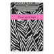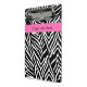 Impressão de zebra branca e preta. O design apresenta um padrão zebra preto-e-branco e uma banda rosa-quente no meio do seu texto personalizado.