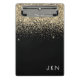 Mini Prancheta Iniciais Douradas de Monograma Girly Glitter Negra