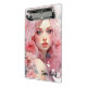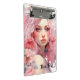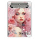 Mini Prancheta Linda Mulher com Cabelo Rosa e Vestido Rosa